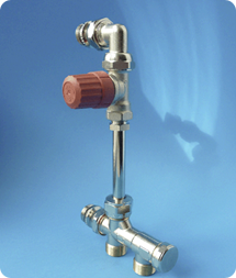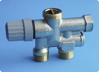 The control valve can be rotated for niche mounting, for example. The radiator flow is presettable between Kv 0.04 and 0.56; the delivery setting is 0.56 m3/h at 1 bar.