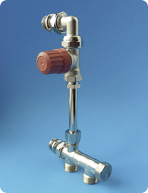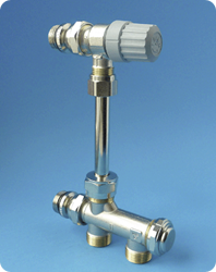 The manifold has a built-in shut-off with open bypass, which means that other radiators in the loop are not affected when a single radiator is closed.